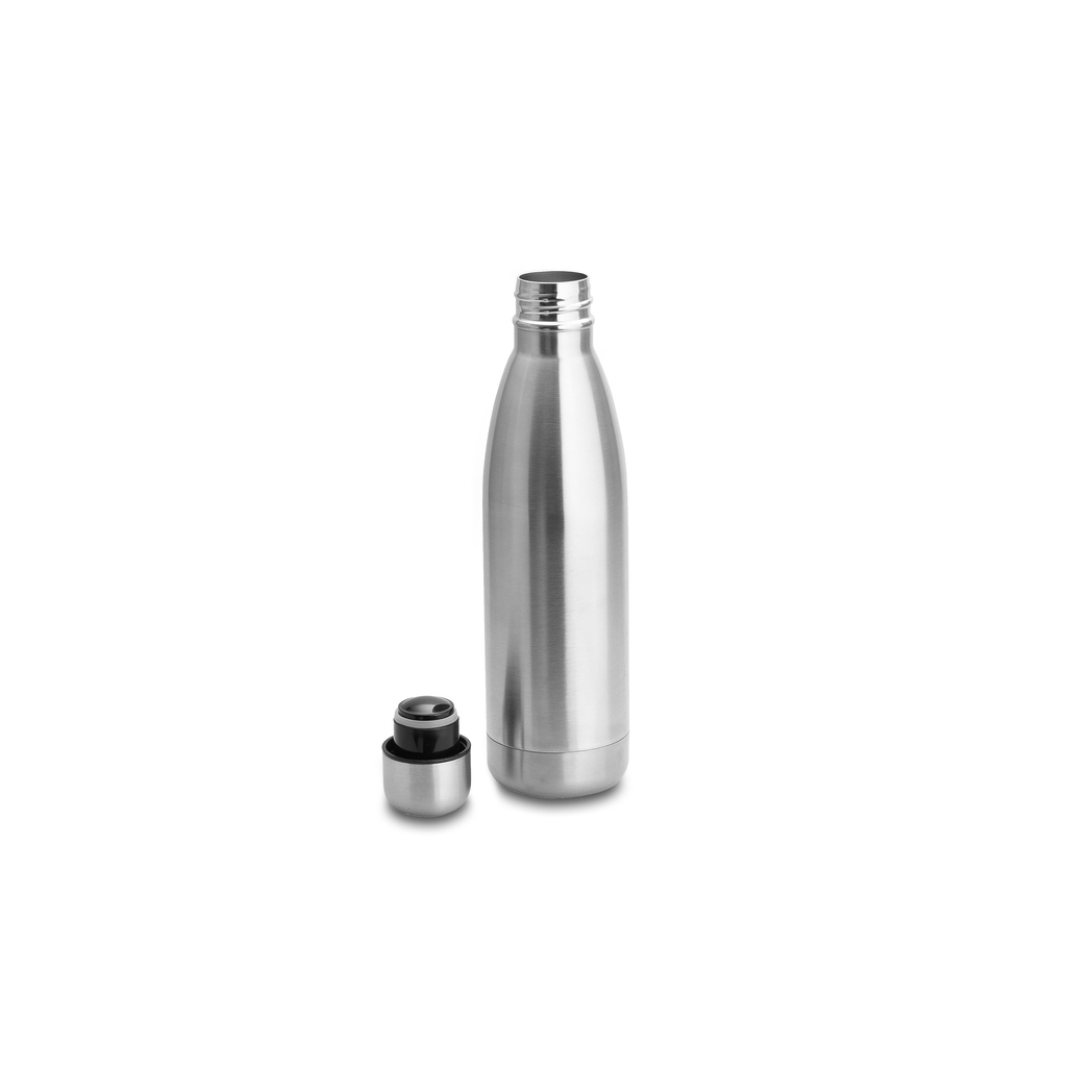 Bidon z logo firmowym został wyposażony w próżnię znajdującą się pomiędzy dwoma ściankami, co zapewnia bardzo dobre właściwości termoizolacyjne.