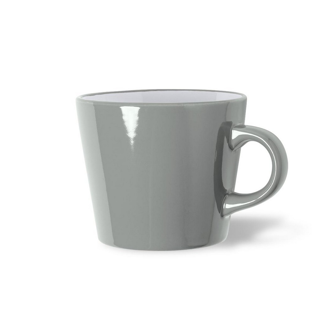Ceramiczne kubki z logo w kolorze szarym doskonale sprawdzają się jako gadżety reklamowe. Błyszcząca powierzchnia kontrastuje z białym środkiem przykuwając uwagę. Sam kolor jest elegancki i pasuje zarówno do oficjalnych spotkań, jak i zebrań w luźniejszej atmosferze.