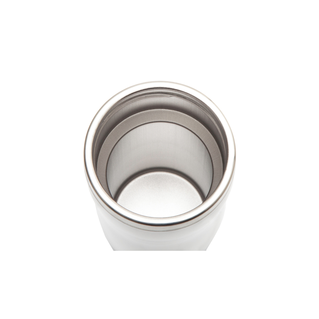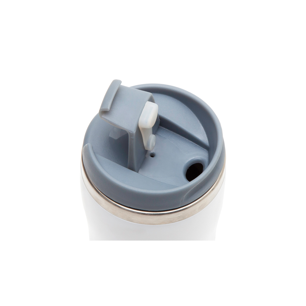 Kubki termiczne z nadrukiem są modne i wygodne. Do tego też świetnie wyglądają, więc stanowią świetne miejsce dla logo. Ten kubek termiczny z logo jest wykonany ze stali nierdzewnej oraz plastiku. Zewnętrzna część jest biała i zestawiona z szarym wieczkiem, które jest eleganckim detalem dodającym mu klasy. Kubek termiczny z własnym nadrukiem sprawdzi się w każdej firmie, bo jest trwały, estetyczny i do tego również odporny na uszkodzenia mechaniczne. To po prostu dobre rozwiązanie dla każdej marki.