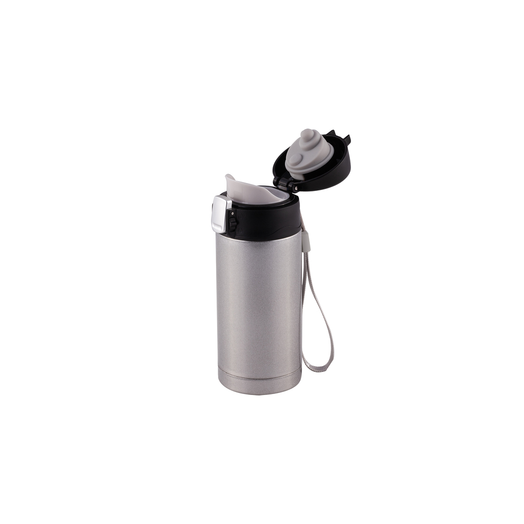Wygodny kubek termiczny z nadrukiem i wyjątkowym uchwytem na nadgarstek. To właśnie dzięki niemu jest łatwy w transporcie i można zabrać go ze sobą wszędzie. Te nowoczesne kubki termiczne z nadrukiem mają ustnik, który ułatwia picie i zmniejsza ryzyko oblania się napojem. Kubek termiczny z własnym nadrukiem to ciekawa propozycja gadżetu marketingowego. Na stali nierdzewnej można umieścić czytelne logo, które jest odporne na ścieranie i zarysowania. Na stali dobrze odcinają się inne kolory, więc łatwo o ich dobór.