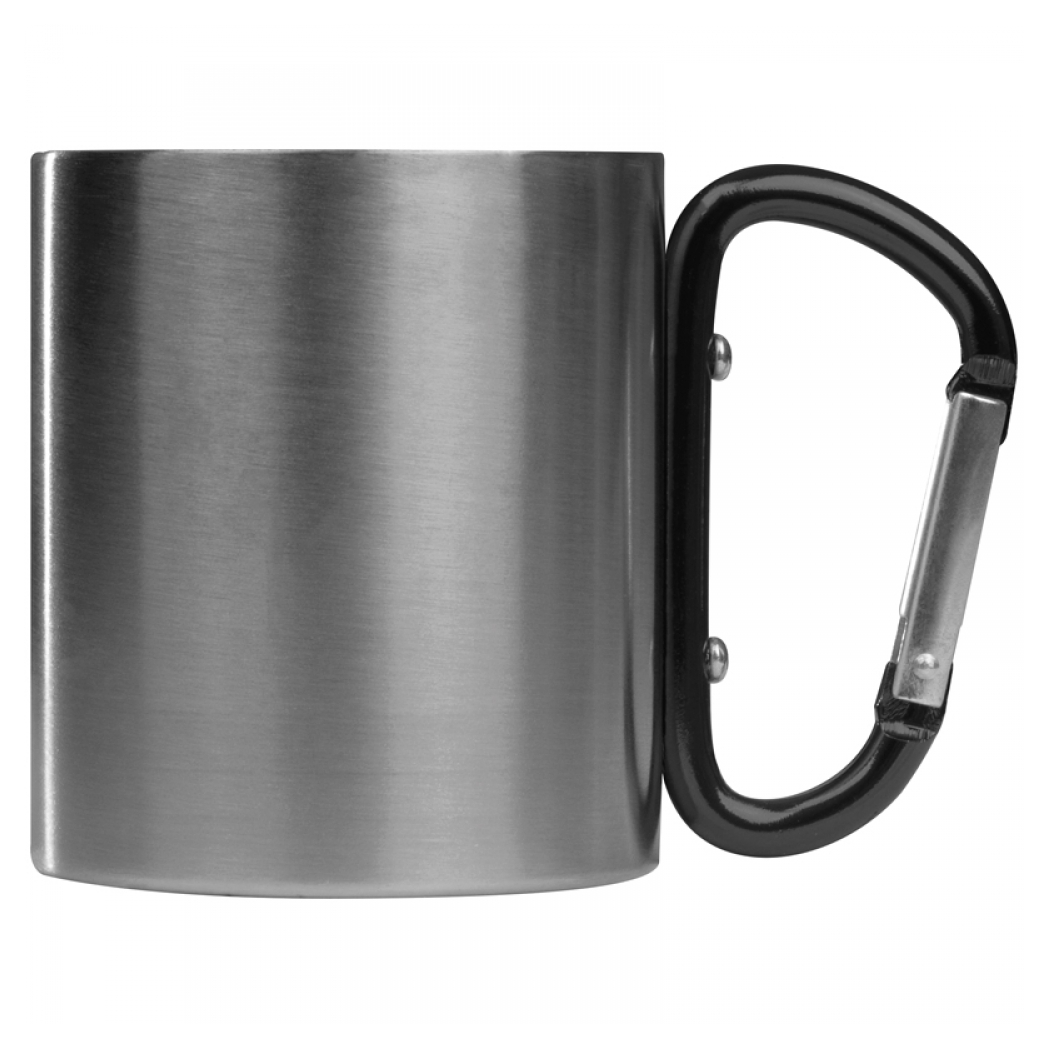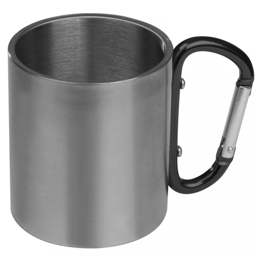 Metalowy kubek z czarnym karabińczykiem 200 ml